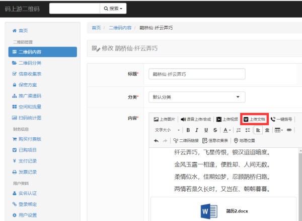 4、上传完成后还可以添加文字描述,点击【生成活码】。