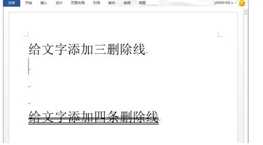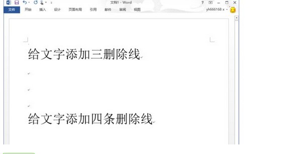 6、回到word文档中,发现“给文字添加三删除线”上面的横线都被去掉了。