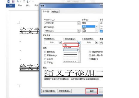 5、下面就来说怎么缓谈样去掉另外的一条线,其实这条线是下划线,点击“下划线线型”下面的下拉框,就会弹出各种类型的册段下划线,选择“无”,然后点击右下方的“确定”。