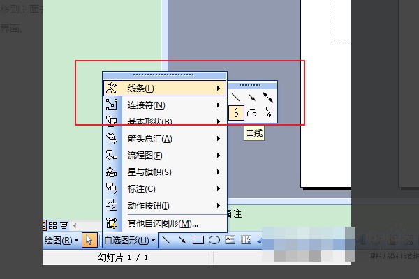 2、接下来他打开ppt之后我们可以看到,左下角有一个自己选图形的一个菜单。