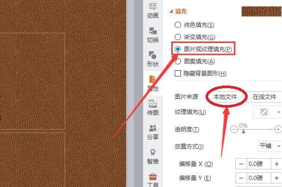 保存之后,可以打开要更改背景的ppt,这时候同样点击背景,使背景处是于编辑状态。可以在本地文件中选择出刚才保存的背景图,然后勾选“图片或纹理填充”,选择完毕后就可以看见背景图已经改变了。