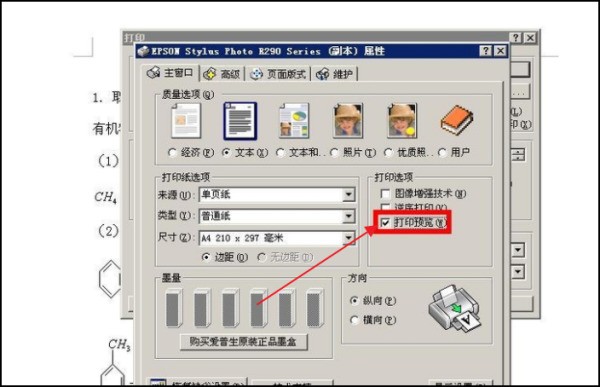 5、在的打印机设置界面,我们直接在打印机设置里设置为打印预览,也就是将下图部分打钩;