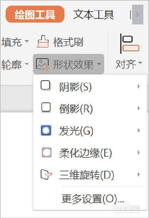 点击【形状效果】下拉相个照菜单中的【柔化边缘】,选择磅值进行渗含锋柔化。