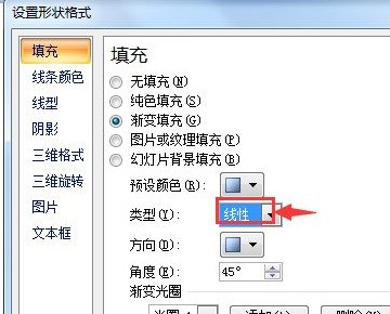 4、点击格式,找到形状填充,选择渐变下的其他渐变,如下图所示。
