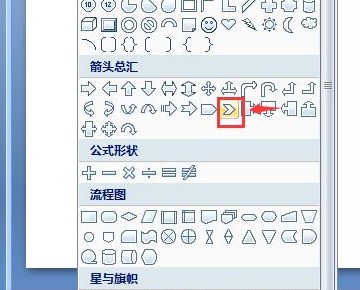 2、然后点击插入菜单,选择形状工具,在箭头总汇中点击燕尾形,如下图所示。