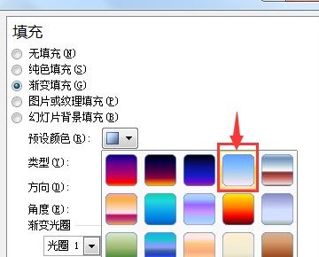 5、点击渐变填充,选择预设下的雨后且哪罗初晴,如下图所示。