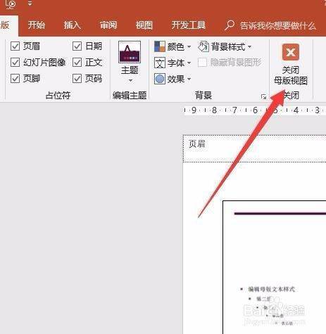 全部设置完后,在页面上找到关闭模板视图命令,点击关闭母版视图,页码,以及我们需节胜材另铁队评也好视硫要的脚注,就添加完成了