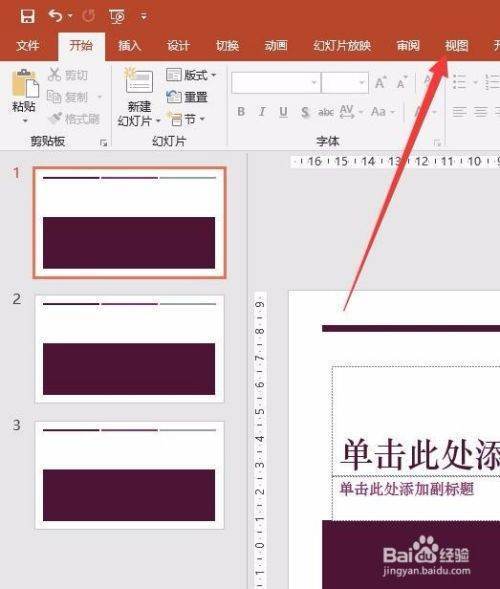 找打并打开我们准备打印的PPT演示文稿,而后在课件页面,找到视图图标