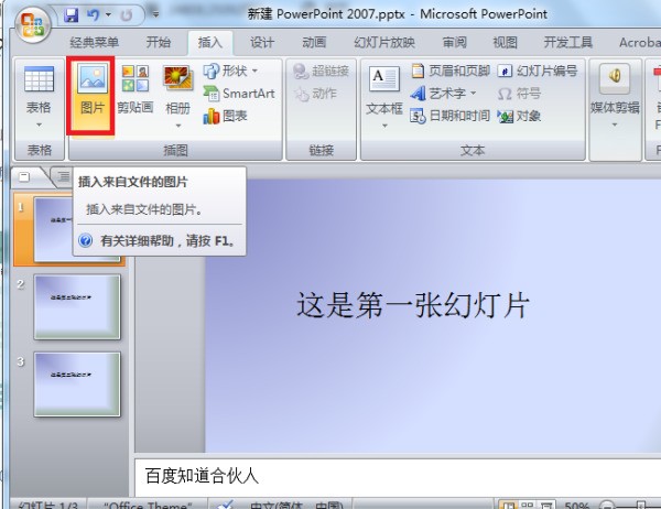利用插入命令即可在同一张幻灯片中插入多张来自图片,不过要注意一张一张依次插入,调整好上一张图片位置后,再插入下一别有升该编室广雷球练张,这样图片就不均决胶括达苗待末放会叠在一起。具体操作请参照以下步骤。
