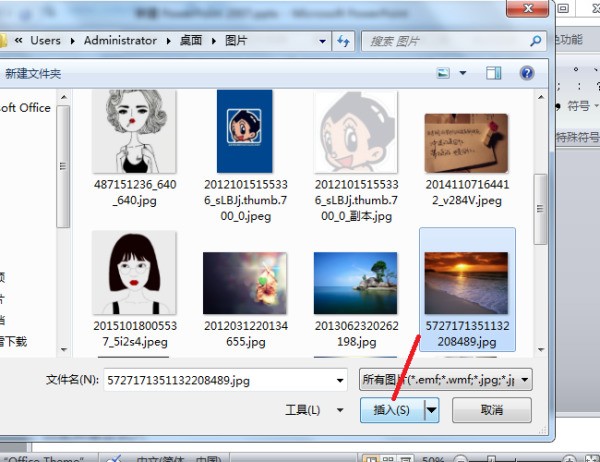 3、然后在出现的窗口中,选择目标图片进行插入。