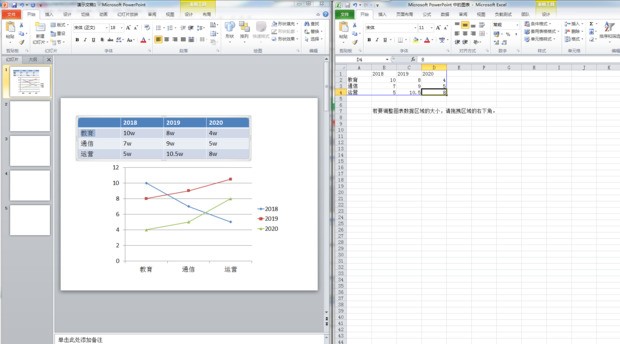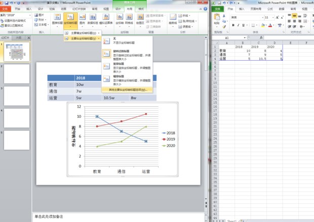 在excle上录入表格数据,插入图表,将图表剪切到ppt上即可