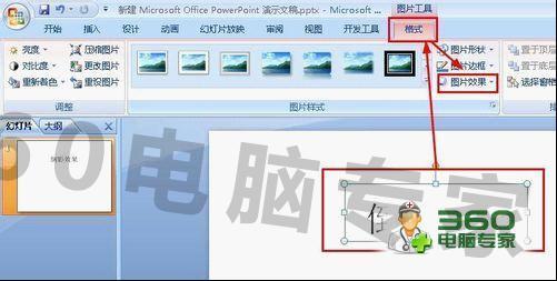 双击这个刚刚建立的图片,然后在各式选项卡中,点击图片效果