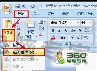 在菜单栏上面依次的点击:开始——黏贴——选择性黏贴