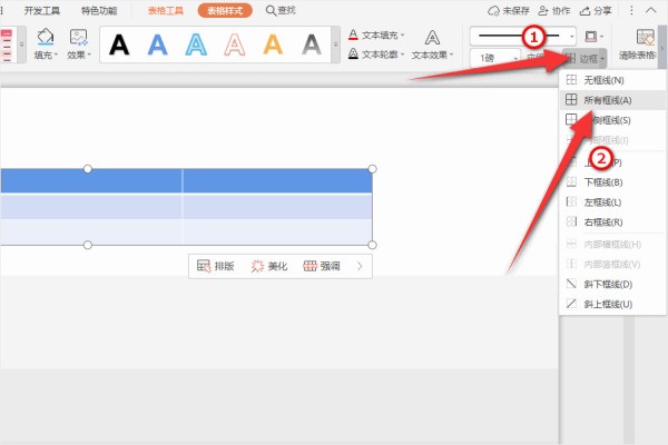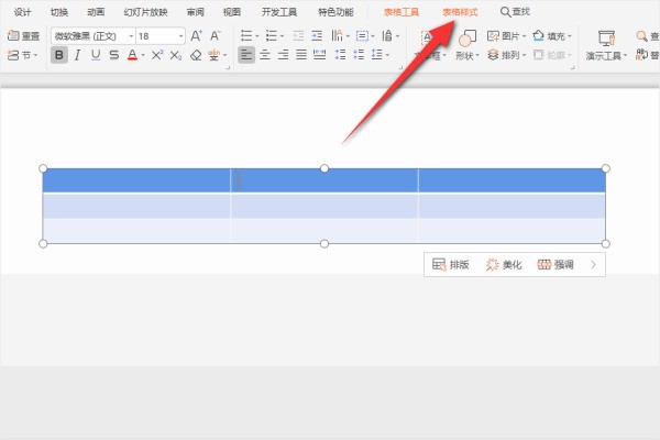 2、点击表格,菜单栏就会出现表格样式,点击表格样式。