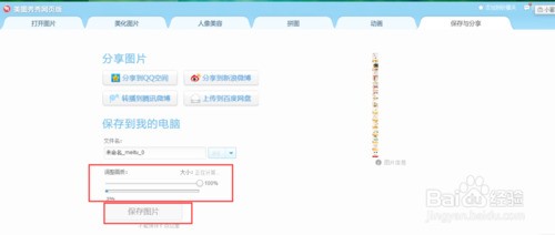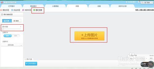 选择【图片拼接】,把【图片间距】调整到0,然后上传刚刚我们从PPT转化过来的图片,然后点击【保存】,注意调整画质到100%,这样保存下来的图片比较清晰。