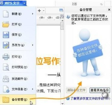 1、系统抽筋了、跳闸断电了,编辑的内容不见了怎么办?砸电脑也没用,最新版的WPS有崩溃恢复功能。也可以点击左上角“WPS来自文字”- 备份管理 找找历史文档。