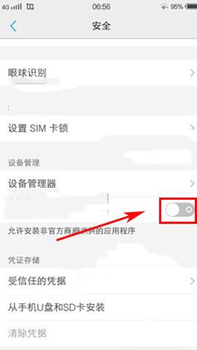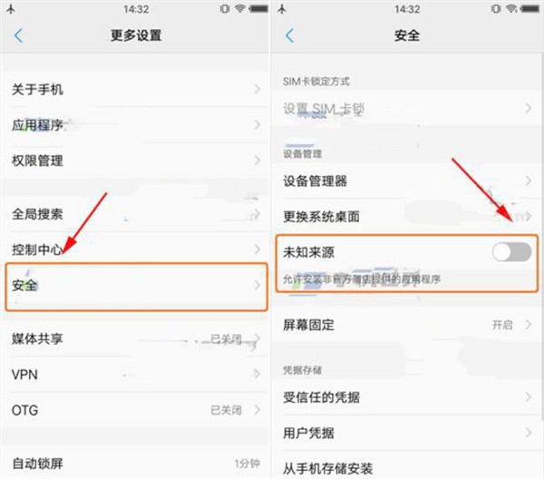 接着再点击进入【安全】,最后找到【安装未知应用】将旁边的开关开启或关闭就可以了。(如下图)