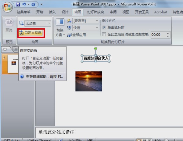3、然后在出现的窗口中,找到“自定义动画”选项进行点击。