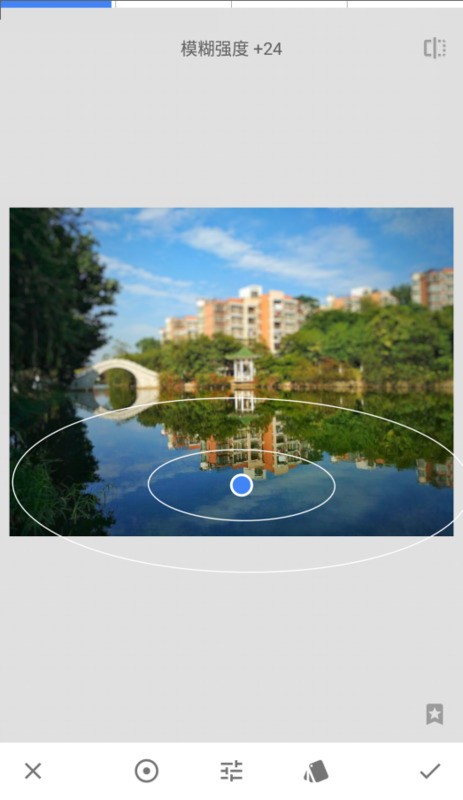 镜头模糊:调节模糊范围,模糊强度,过渡以及晕影强度。