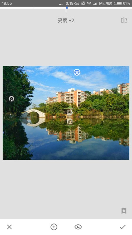 局部调整:用手指调节调控范围,可调节局部的亮度,对比度,饱和度以及结构。
