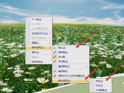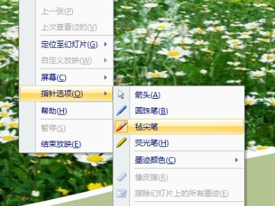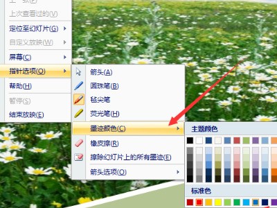 2、点击鼠标右键,点击指针选项,点击墨迹颜色,对墨迹的颜色进行设置。