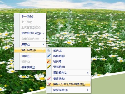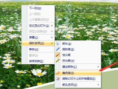 4、点击指针选项,擦除幻灯片上的所有墨迹,可以一键擦除所有的标注。
