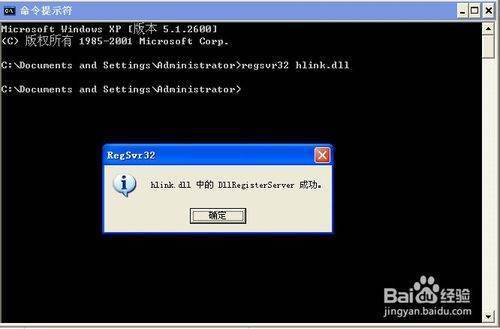 7、回车,弹出对话框,提示***.dll中的DllRegisterServer 成功。