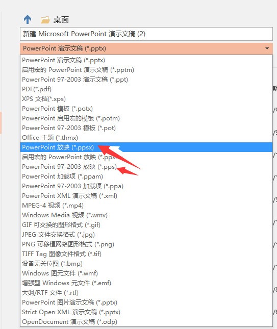 5、在保存选项下选择“PPS”或“ppsx”都可以。