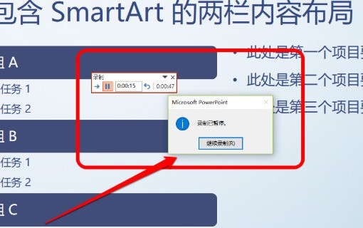 8.在设置过程中,您可以选择暂停幻灯片的设置。