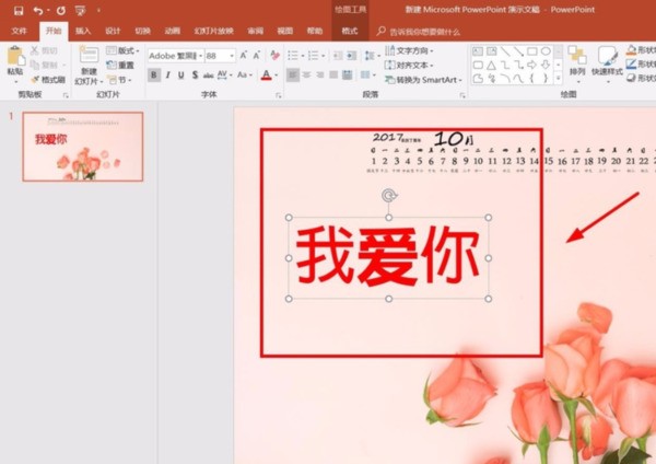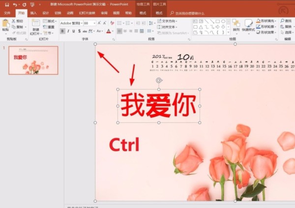 5、将文字添加到PPT模板中-调整字体大小。