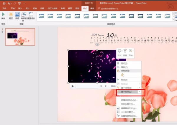 9、将我们提前下载好的视频素材放到PPT模板中
