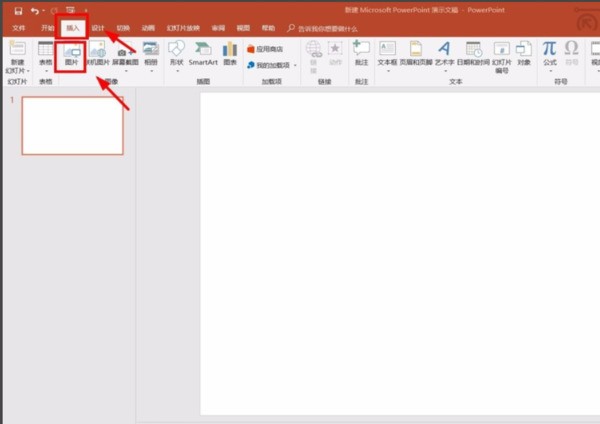 1、在电脑上打开PPT空白文档,点击页面上方的【插入】-点击【图片】