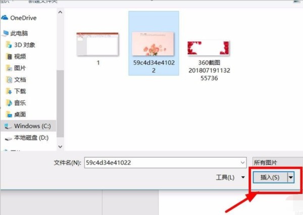 2、在文件夹中选中自己想要的图片,插入到PPT文档当中
