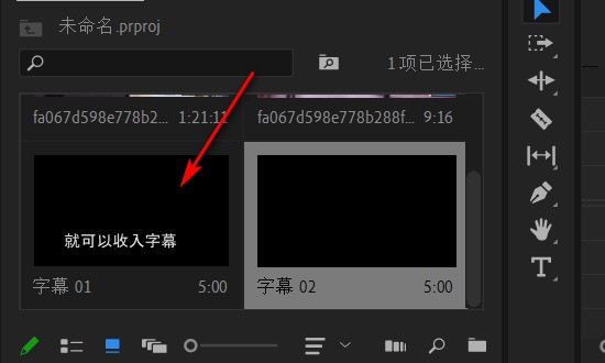 打开该素材箱,双击空白处,导入刚刚保存的PSD字幕文件(合并所有图层)。