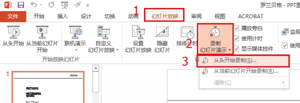 1、选择幻灯片放映-录制幻灯片演示-从头开始录制