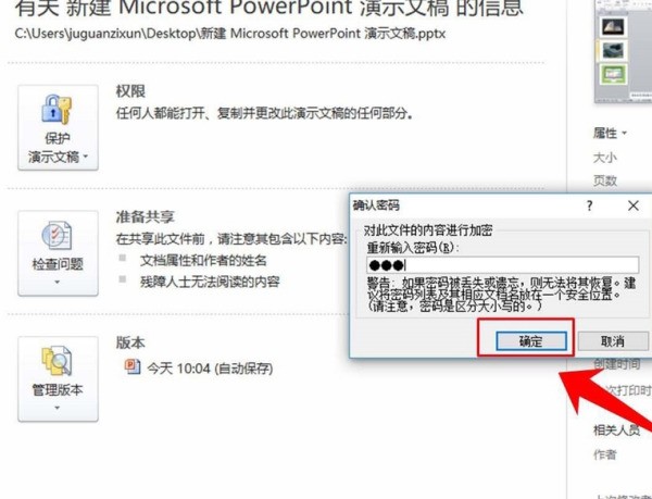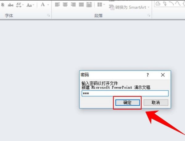 6、打开加密PPT文档找到加密文档存储的位置,双击打开文档,输入密码,然后点击【确定】。