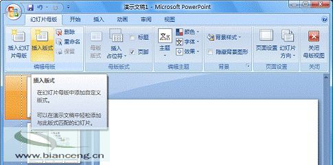 PowerPoint 2007 之前的版本所提供的幻灯片版式是不允许用户自行定义的,现在PowerPoint 2007 已经可以让您随心所欲的自定义专用的幻灯片版式了。若要添加新的自定义幻灯片版式,必须先切换到幻灯片母版视图,添加一个新的幻灯片版式后,附加您所需要的对象,然后另存为模板文件即可360问答。