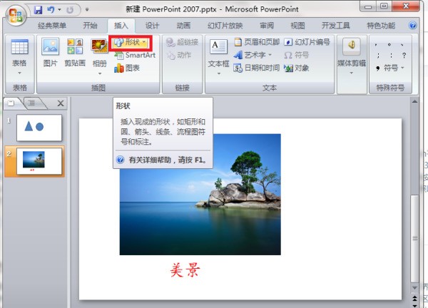 2、点击界面上方菜单栏选项“插入”,在其页面中找到“形状”图标。