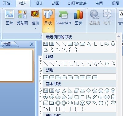 2,找到下方的“插图”工具栏组,选择工具栏组中的“形状”按钮,如下图
