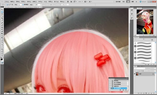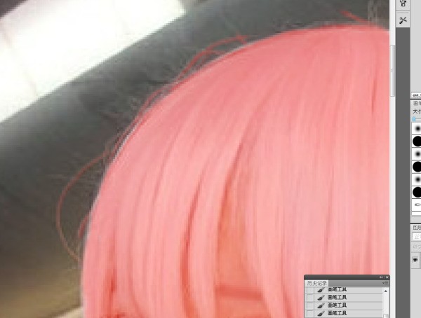 3.好的,现在拿起画笔工具,除了头发边缘的地方随便图了,透明度100%,流量100%,硬度0