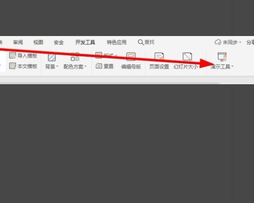 2、找到上方的【设计】选项,选择右侧的【演示工具】选项打开使用对应的工具。