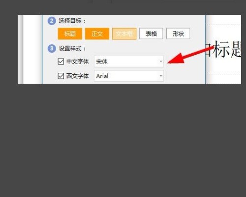 5、接下来选择【目标】和【字体】选项,打开字体列表,选择要替换使用的字体。