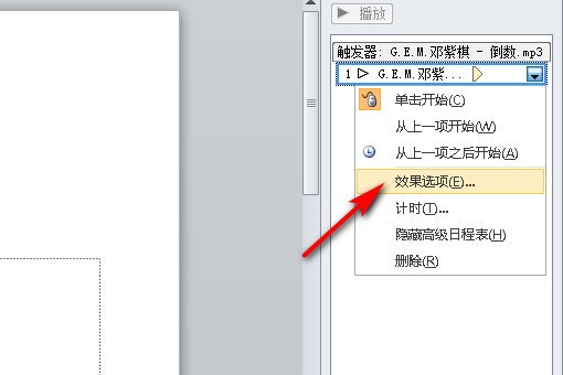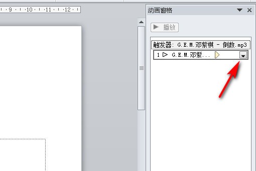 8、在右侧找到这个音频的动画方案,选择后面的下拉菜单,如下图所示: