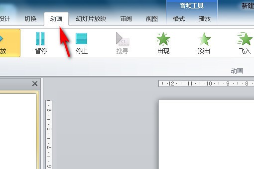6、选中这个插入的音频,选择菜单中的动画,如下图所示: