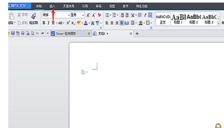 1.打开WPS,进入它的主页面,点击红色箭头所指的“插入”