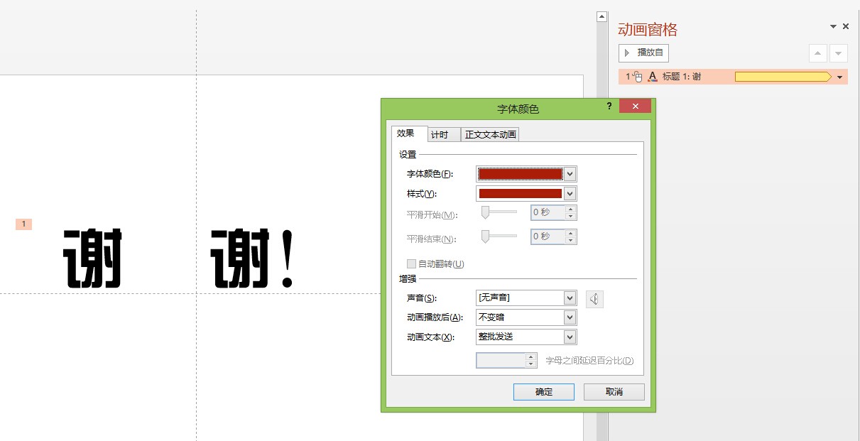 如下图中设置就是鼠标单击时,第一个“谢”字立刻变成红色