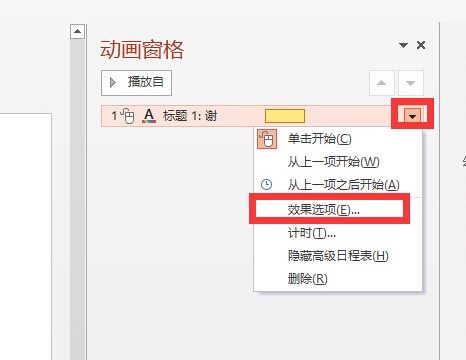 2、点击动作后的倒三角,选择效果选项
