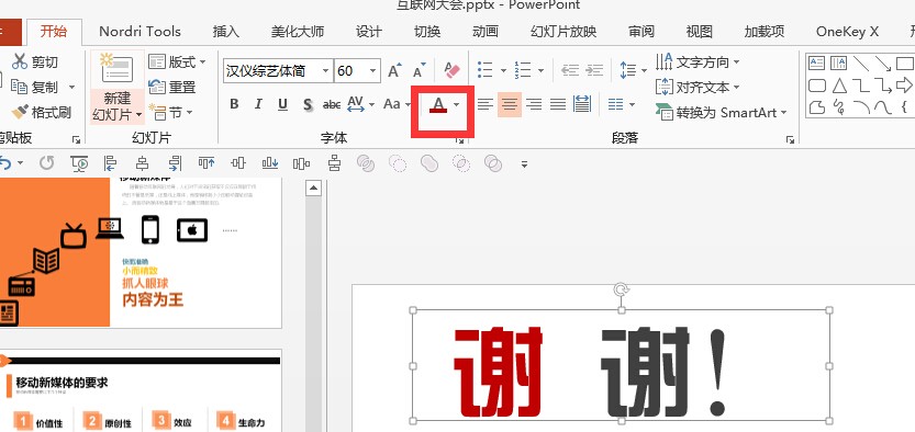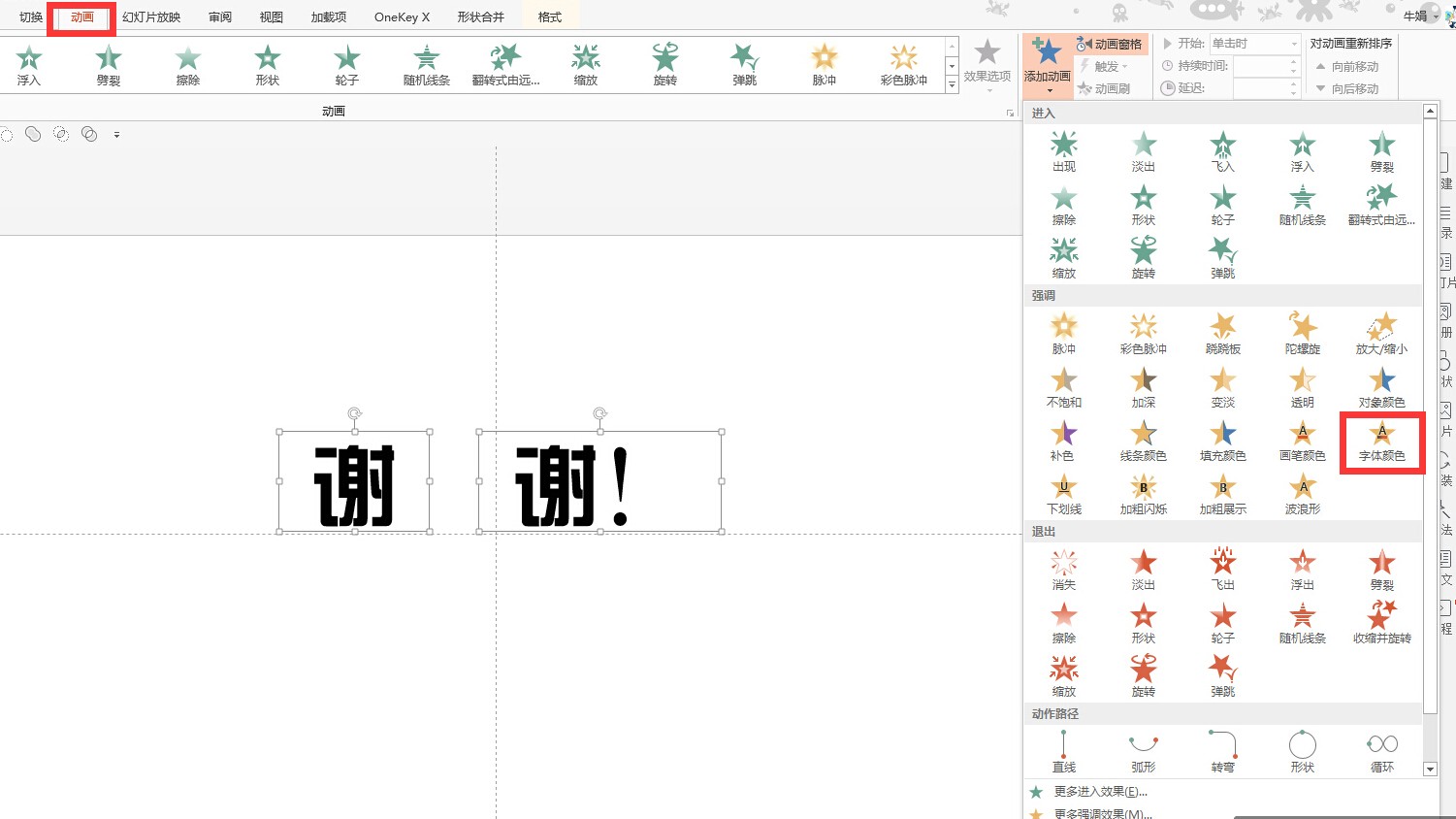 如果是静态的PPT中强调文字可以直接更改文字的颜色