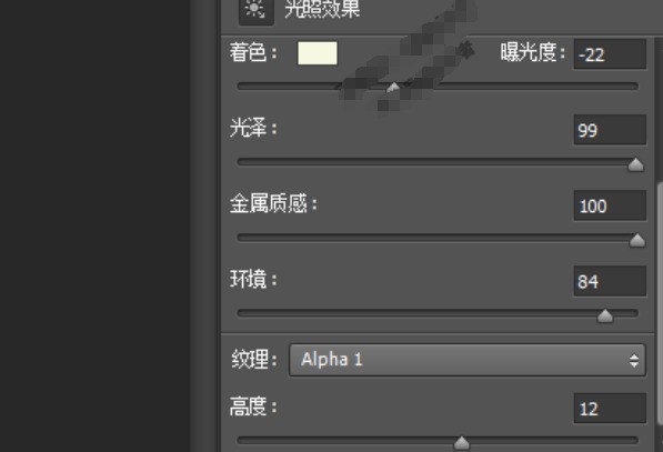 6、然后,顺序点击:滤镜-渲染-光照效果。右边弹出“光照效果”设置窗口;在“光源”这里选择“点光”,在“纹理”这里选择“Alpha 1“,然后,其它参数请看下图。记得在上方点击确定。