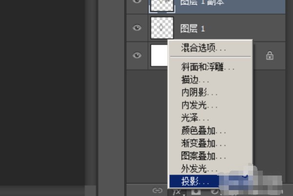 8、然后,在图层面板这里, 点击“添加图层样式”按钮。弹出的菜单中点“投影”。